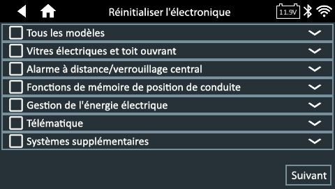 5. Une fois le test de la batterie terminé, si les instructions de réinitialisation sont disponibles, vous serez redirigé vers un écran de sélection pour sélectionner les instructions que vous souhaitez voir.