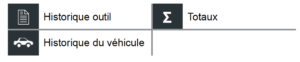Utilisez l’historique des outils pour afficher l’historique total des tests ainsi que les totaux des tests dans le véhicule et hors du véhicule. Les résultats des tests individuels sont également affichés.
